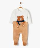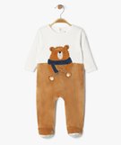 Pyjama velours à motif ouverture pont-dos bébé marron