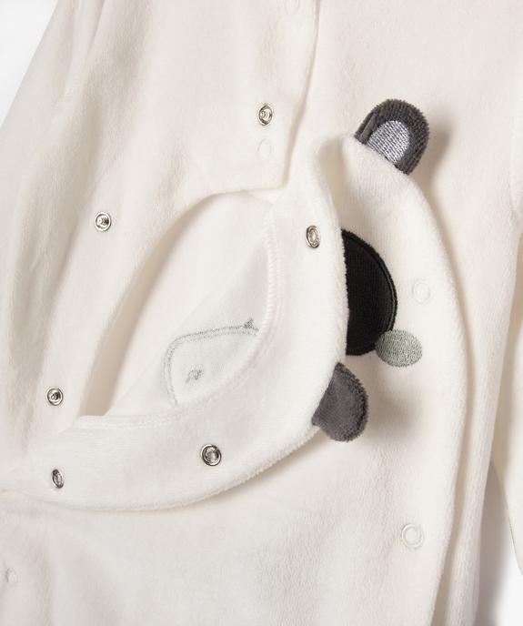 Pyjama velours motif panda ouverture devant bébé blanc