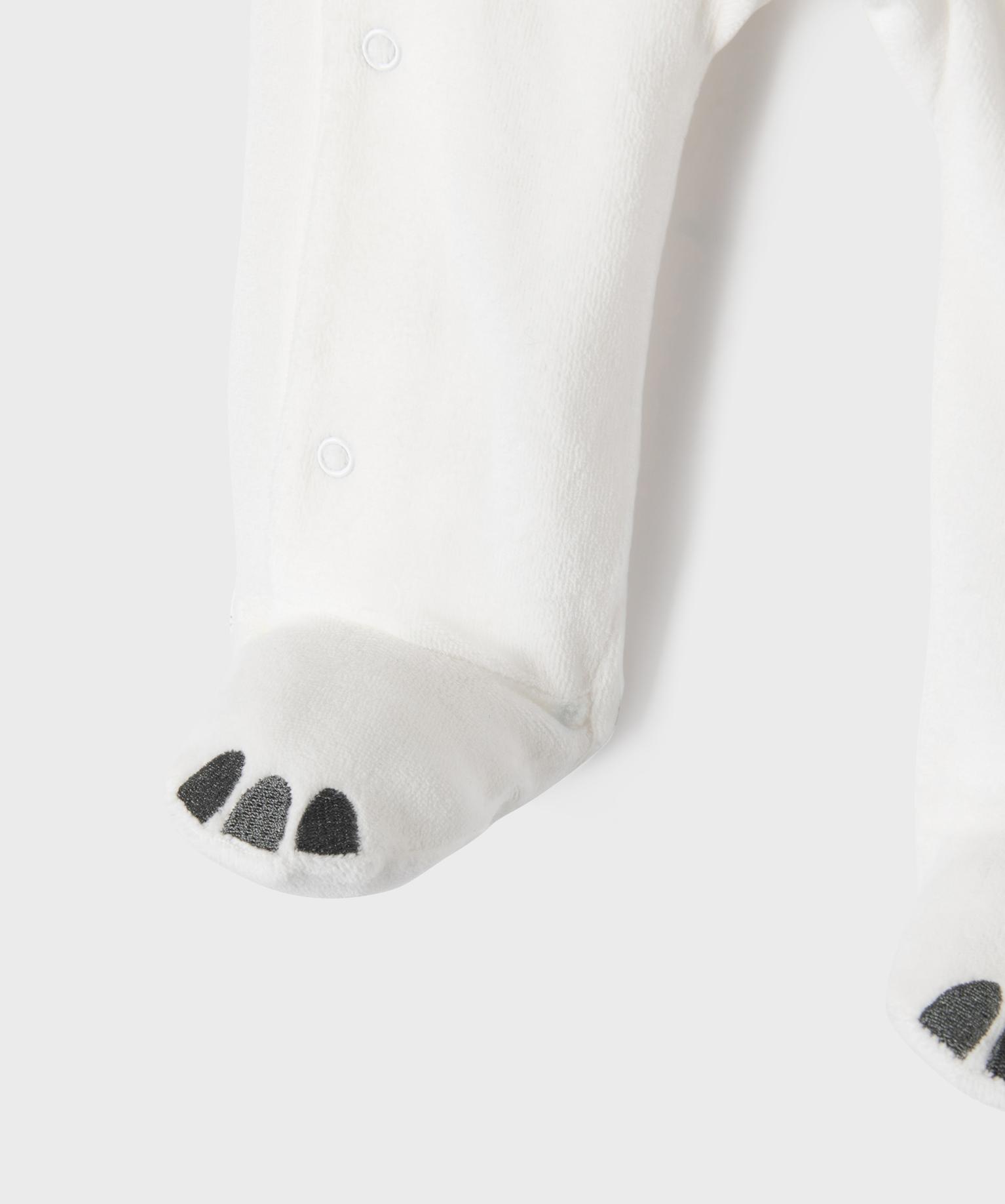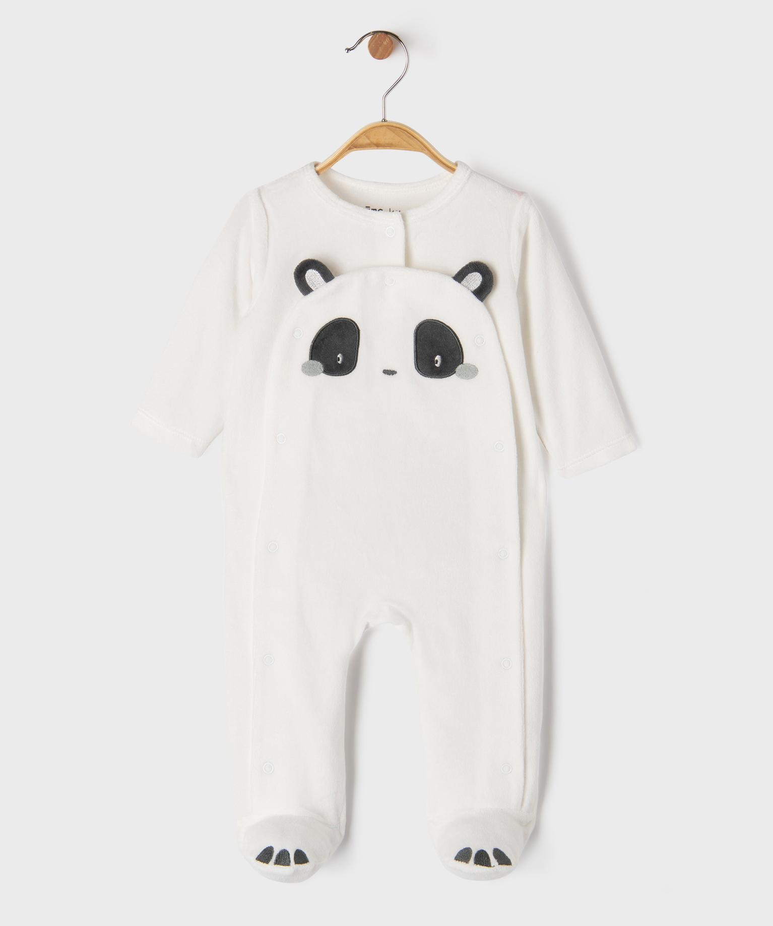 Vous allez tomber sous le charme de cet adorable pyjama bébé à motif panda. Ce pyjama en velours tout doux se distingue par son ouverture sur l’avant par boutons pression qui permettent de découvrir l’intégralité du ventre jusqu’au dessus des pieds. Ce pyjama bébé garçon séduira les bouts de chou et leurs parents par ses oreilles en relief et ses petites griffes brodées sur le dessus des pieds. Col rond avec finitions biais.