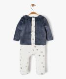 Quelle petite merveille, ce pyjama bébé ! Un adorable pyjama en velours doublé peluche avec des finitions coquettes : un col volanté, un haut façon gilet ouvert dans le dos pour un adorable effet 2-en-1, des motifs pailletés ! Pratique, le pyjama présente une ouverture pont-dos pressionné, pour un habillage et un change faciles.