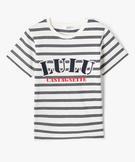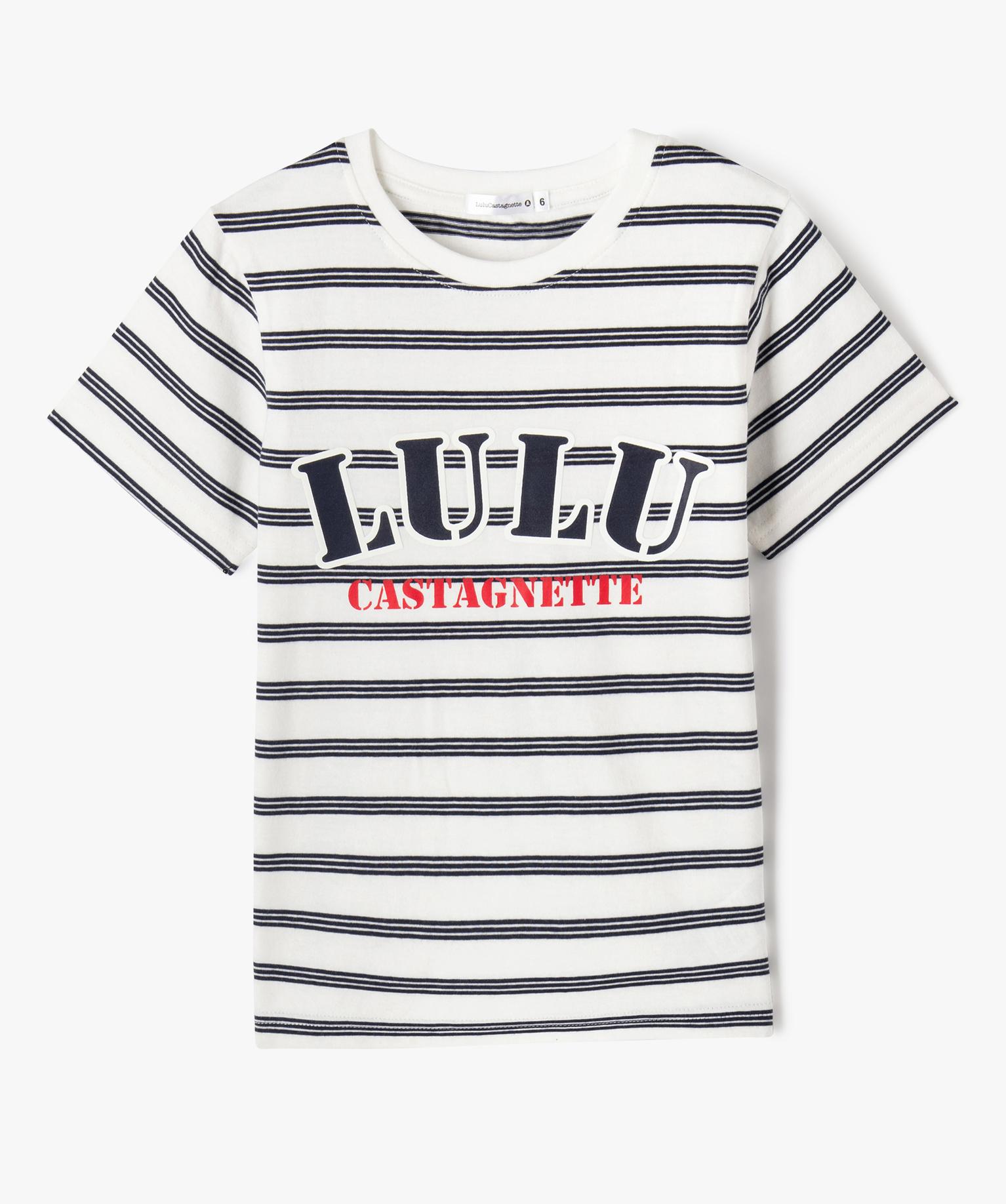 Offrez à votre enfant un joli pyjashort LuluCastagnette inspiré de la tendance marine. Un pyjashort garçon composé d’un tee-shirt à manches courtes et col rond, orné de rayures et d’une inscription sur la poitrine, et d’un short uni avec taille élastique ajustable par cordon coulissant. Un pyjama d’été si élégant que les garçons le porteront également lors de toutes leurs journées détente.