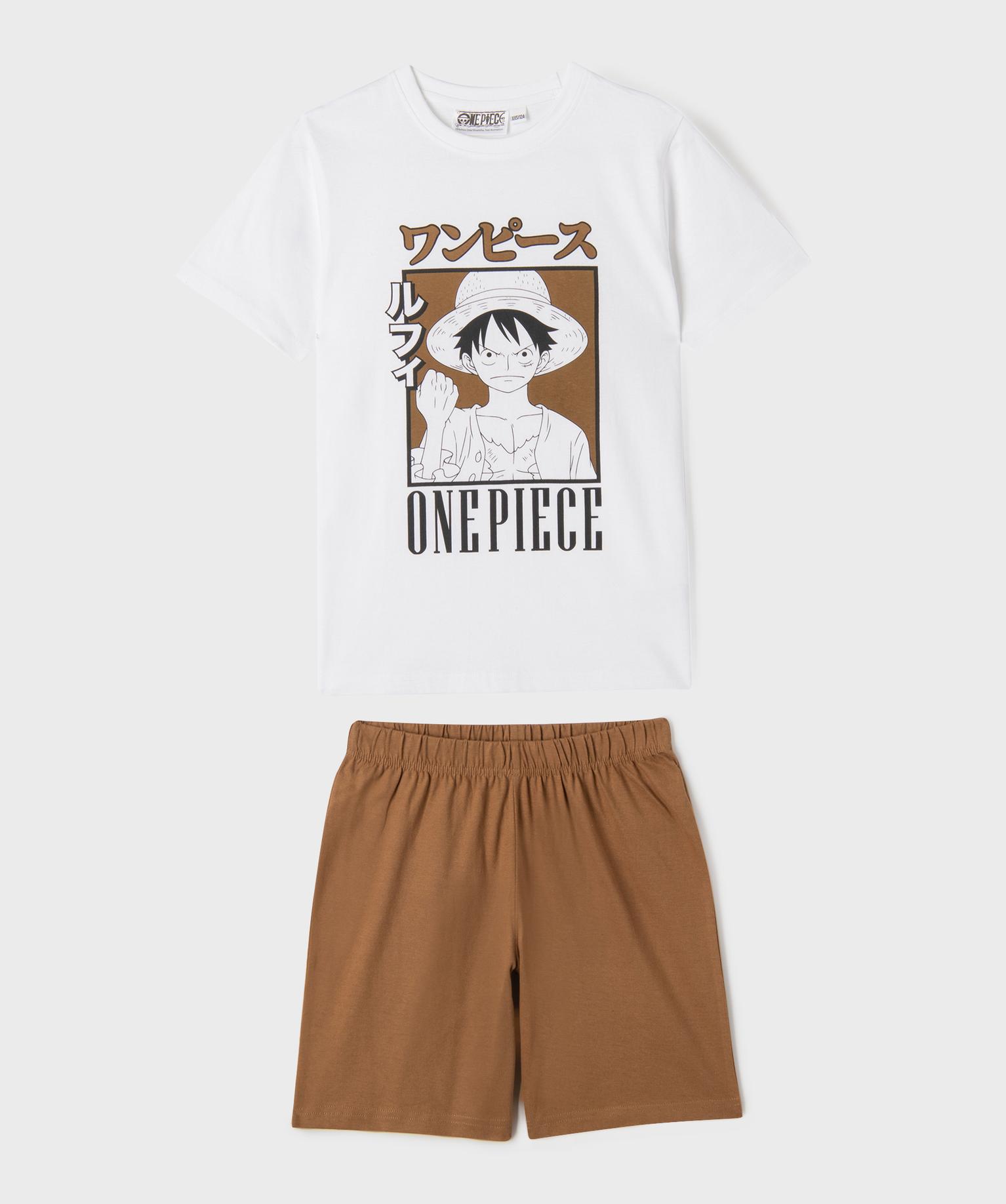 Pyjashort bicolore avec motif manga garçon - One Piece blanc