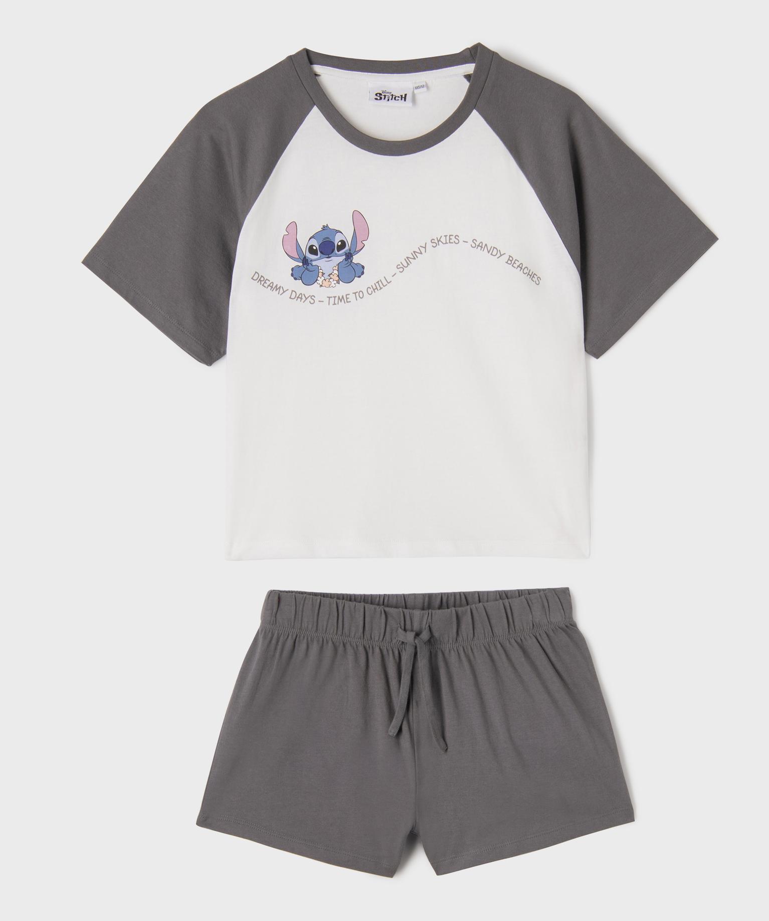Pyjashort bicolore avec motif Stitch fille - Disney blanc