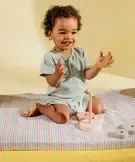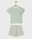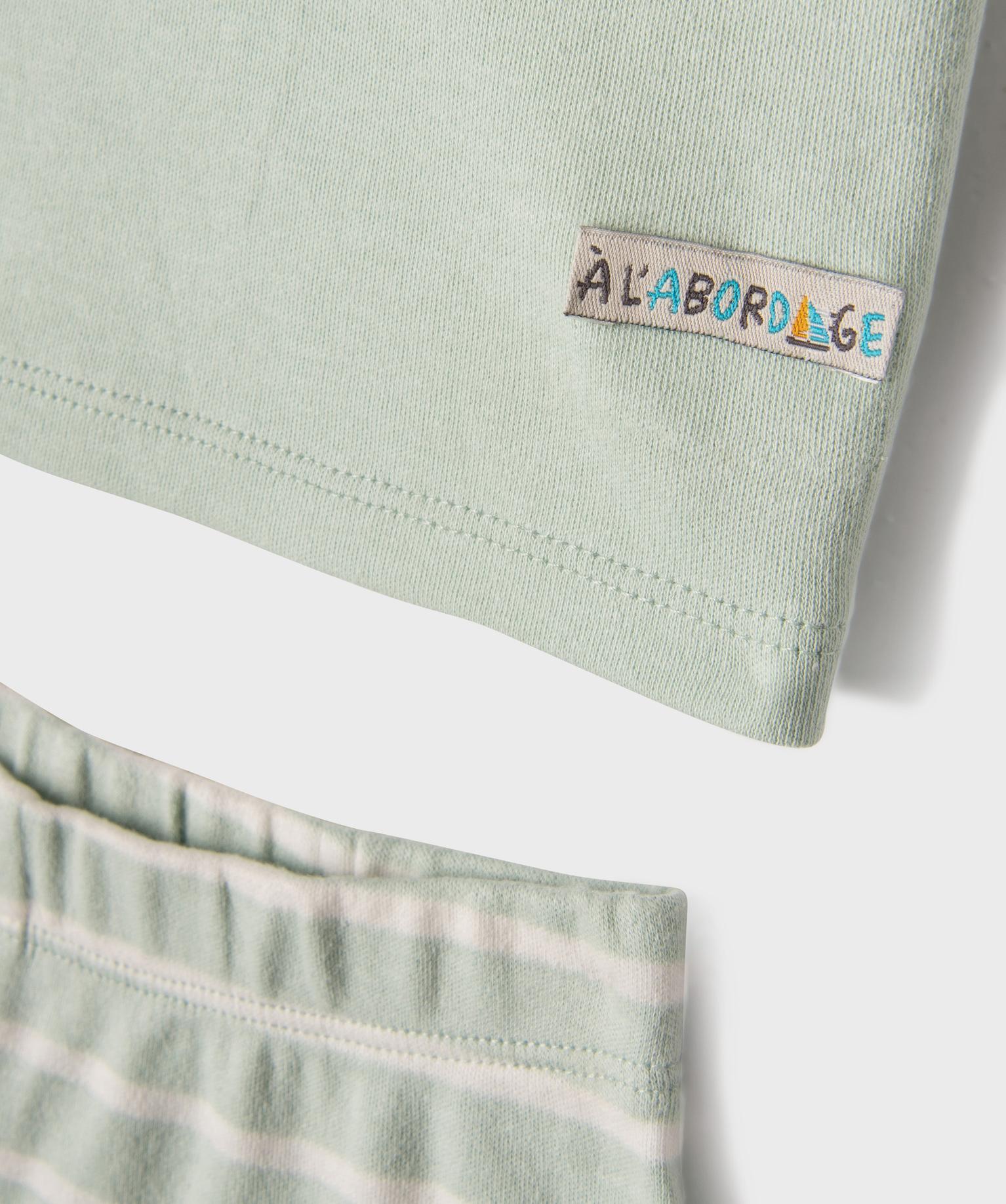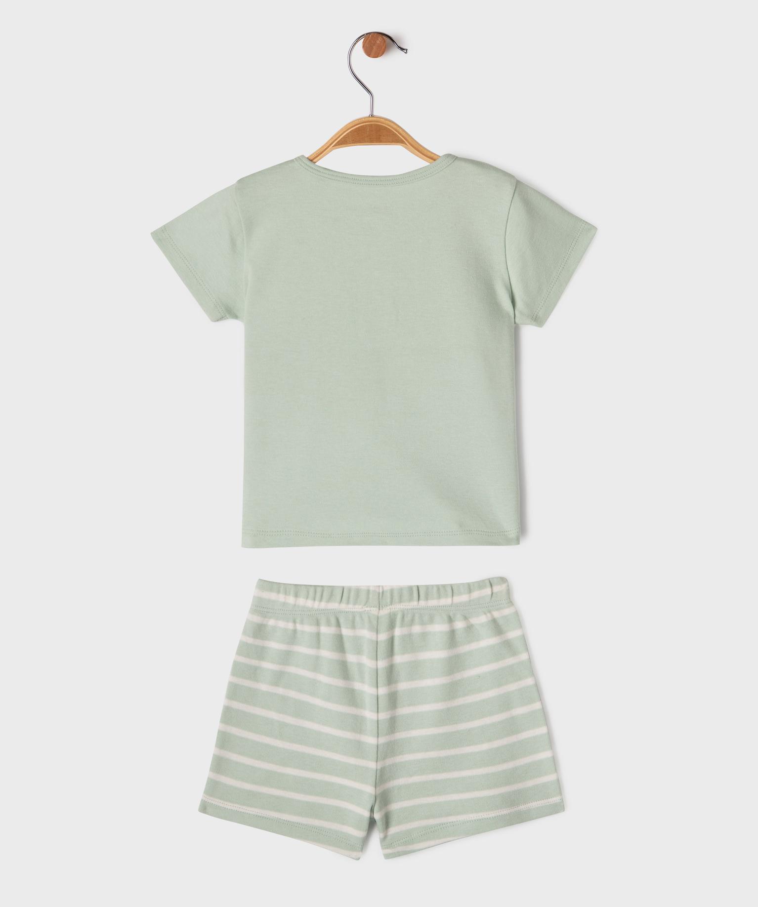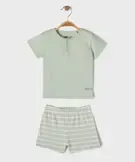 Pyjashort en coton à col tunisien et short rayé bébé garçon vert clair