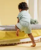 Laissez-vous séduire par le charme de ce pyjashort pour bébé garçon ! Sa maille interlock épaisse et douce apporte à bébé un confort absolu. Vous apprécierez également sa facilité d'enfilage grâce à sa taille élastiquée et à son col pressionné. On craque surtout pour le style casual chic de ce pyjama court : il associe un short rayé et un tee-shirt tunisien uni dans une couleur tendance et rafraichissante.