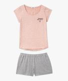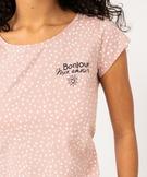 Plongez dans le confort absolu avec ce pyjashort en coton, une invitation à des nuits douces et agréables. Composé d'un tee-shirt à manches courtes orné de charmants motifs et d'une inscription délicate sur la poitrine, ainsi que d'un short uni assorti, cet ensemble de nuit vous offre une sensation de bien-être inégalée. Le tee-shirt à col rond apporte une touche de style décontracté, tandis que le short uni ajoute une note de simplicité élégante. Ce pyjashort pour femme est idéal non seulement pour la nuit, mais aussi comme tenue d'intérieur tout au long de la journée.