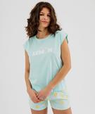 Ce pyjashort femme vous plonge dans une atmosphère estivale grâce à ses couleurs douces et son motif ! Le pyjama d'été se compose de deux pièces idéales pour les nuits d'été : un short ample à taille élastiquée entièrement imprimé, accompagné d'un tee-shirt sans manches, coupe loose et col rond dégagé avec inscription sur le devant. Fabriqué en jersey flammé 100 % coton, le pyjama court offre une sensation de douceur et de légèreté, idéale pour vos nuits ou moments de détente à la maison.