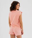 Ce pyjashort femme vous plonge dans une atmosphère estivale grâce à ses couleurs douces et son motif ! Le pyjama d'été se compose de deux pièces idéales pour les nuits d'été : un short ample à taille élastiquée entièrement imprimé, accompagné d'un tee-shirt sans manches, coupe loose et col rond dégagé avec inscription sur le devant. Fabriqué en jersey flammé 100 % coton, le pyjama court offre une sensation de douceur et de légèreté, idéale pour vos nuits ou moments de détente à la maison.