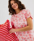 Ce pyjashort femme se compose de deux pièces parfaites pour les nuits d'été : un short ample à taille élastiquée et un tee-shirt à manches courtes avec col rond. Conçu en jersey de coton, le pyjama court offre une douceur agréable. Sa couleur gourmande et vive, associée à un motif all over estival, évoque les beaux jours. Cet ensemble de nuit léger est idéal pour profiter de moments de détente, alliant simplicité et modernité.