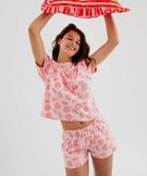 Pyjashort en coton imprimé femme rose