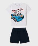 Pyjashort en coton imprimé garçon - HotWheels blanc