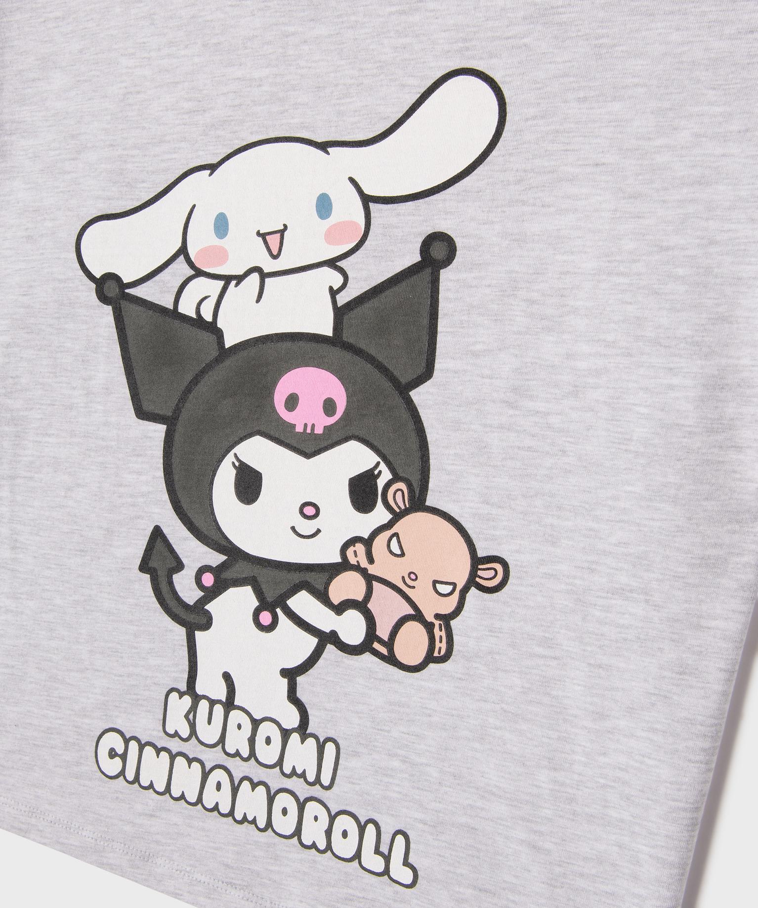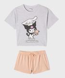 Pyjashort en jersey de coton imprimé haut loose fille - Kuromi gris