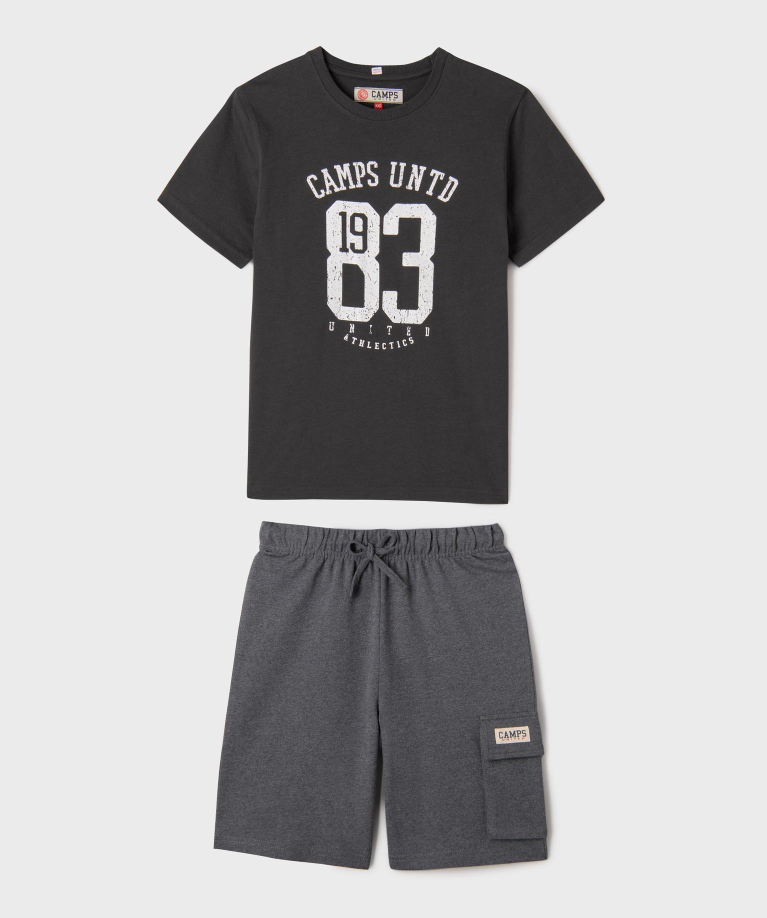 Les ados vont craquer pour le look rétro avec ce pyjashort esprit vintage signé Camps United ! Le tee-shirt en coton affiche une inscription vintage sur le buste, tandis que le short en maille French Terry apporte confort et style, avec sa poche à rabat pratique sur la cuisse. Un pyjashort garçon confortable et tendance, parfait pour des nuits douces ou des journées détente à la maison.