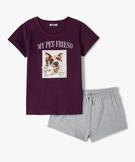 Un pyjashort spécialement conçu pour les ados amoureuses des animaux. Il rend hommage aux compagnons à 4 pattes avec son motif format photo sur l’avant. Un pyjashort fille original composé d’un tee-shirt à manches courtes et d’un short uni de coloris différent. Ce short possède une taille élastiquée ajustable par cordon à nouer. Tee-shirt à col rond.