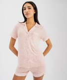 Le pyjashort remporte tous les suffrages en saison estivale. Il allie à merveille confort et élégance et accompagne les femmes pour des nuits paisibles mais aussi lors de tous les moments de détente. Ce pyjashort femme se compose d’un chemise à manches courtes avec grand col et poche poitrine, fermée par de petits boutons aux reflets nacrés, et d’un short avec ceinture élastique. Cet ensemble homewear est rehaussé d’un joli biais passepoilé contrastant, ajoutant une touche de sophistication.