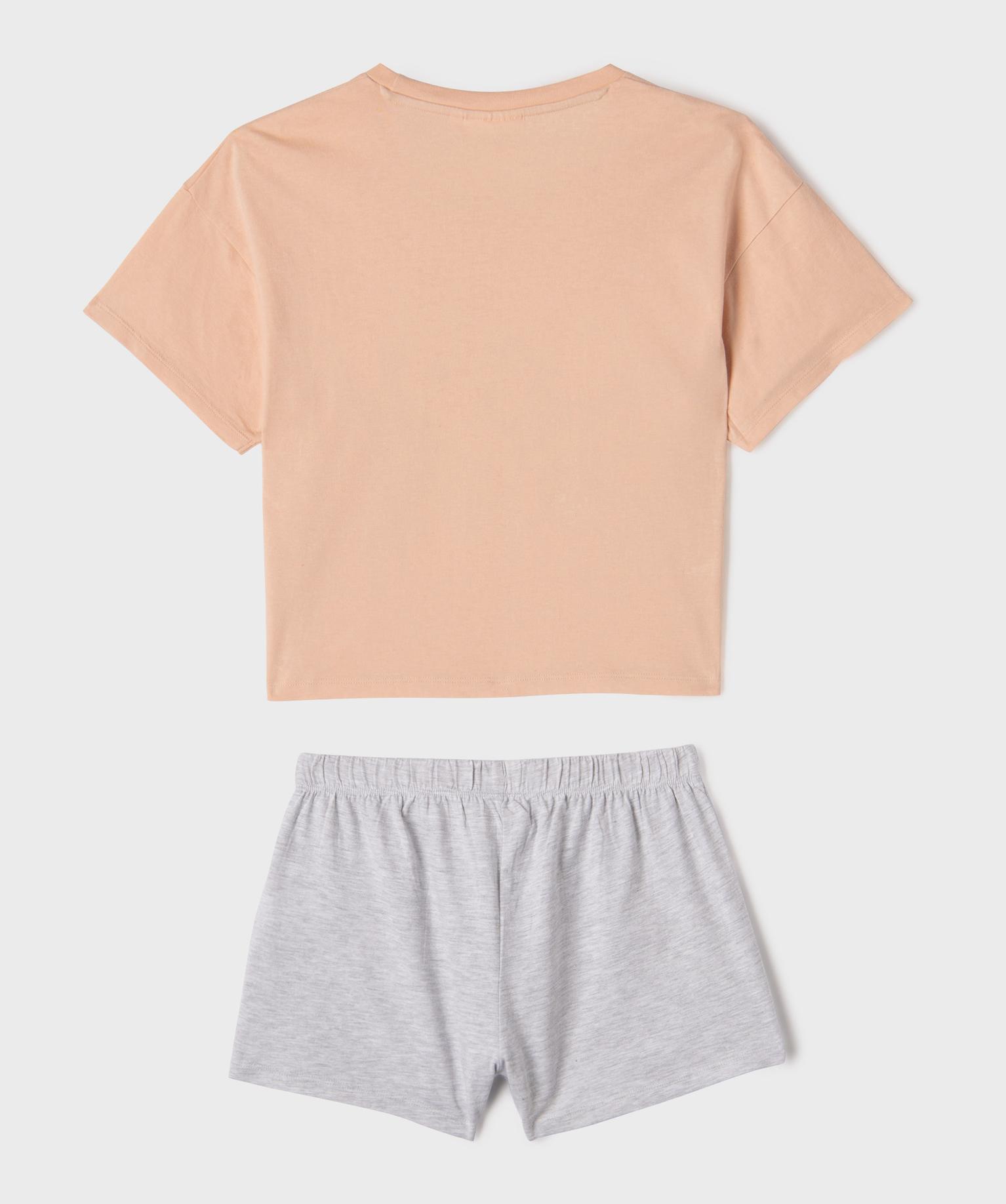 Ce pyjashort pour fille à l'effigie de Stitch est l'ensemble idéal pour des nuits confortables et stylées. Il se compose d'un haut manches courtes à la coupe crop top large, arborant un grand imprimé craquant sur le devant. Le bas est un short chiné doté d'une taille élastiquée et de deux liens décoratifs à nouer. Un ensemble fun et décontracté, parfait pour toutes les fans du célèbre héros de Disney.