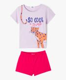 Idéal pour les nuits d'été, le pyjashort fille se compose d'un tee-shirt manches courtes et d'un short en coton doux et léger. Ici, le haut de pyjama est décoré d'un motif léopard et d'une inscription mis en relief par des paillettes. Le short de pyjama avec ceinture élastique s'affiche dans un coloris différent pour une note de contraste moderne.