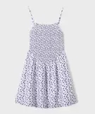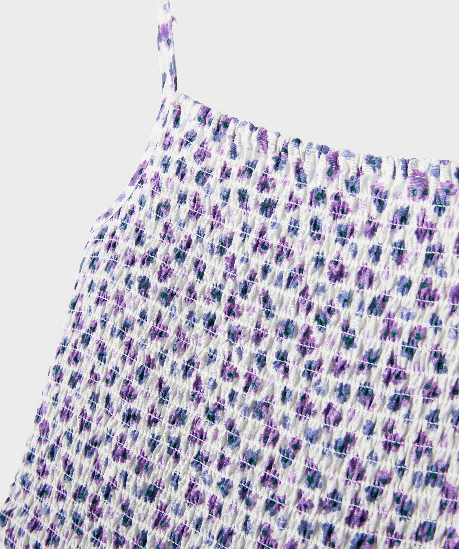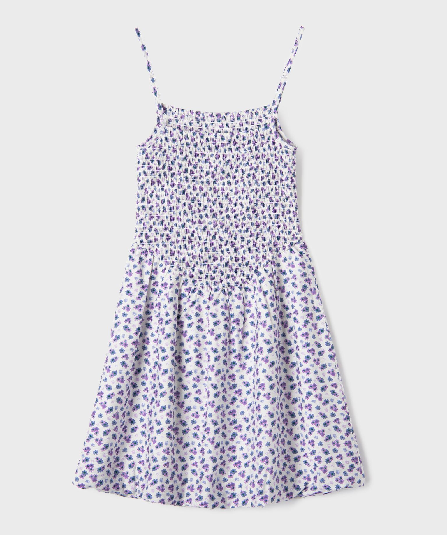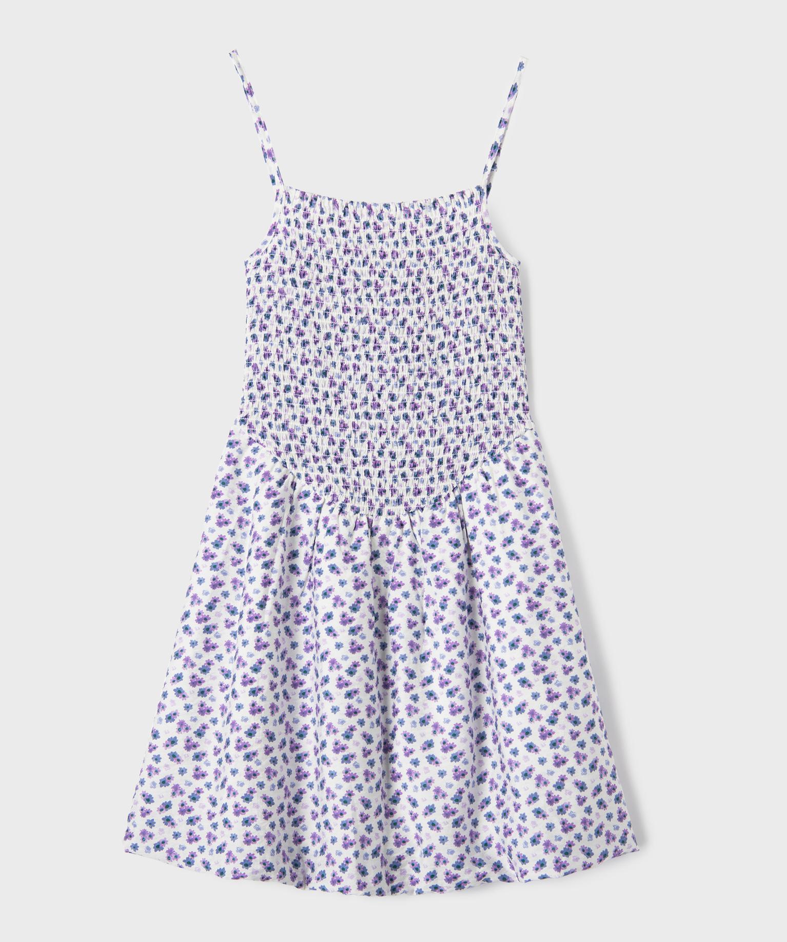 Robe à bretelles à motifs fleuris avec buste smocké fille violet