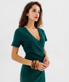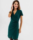 Sublimez votre silhouette avec cette jolie robe à manches courtes affichant un bel effet drapé. Une robe façon portefeuille avec décolleté en V et empiècement flottant sur une jupe fermée offrant une allure chic sans dévoiler les jambes. Cette robe femme à la coupe cintrée souligne les courbes avec élégance, elle se porte le jour avec des boots et le soir avec des escarpins à talon.