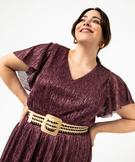 Robe à manches courtes en maille scintillante femme grande taille rose