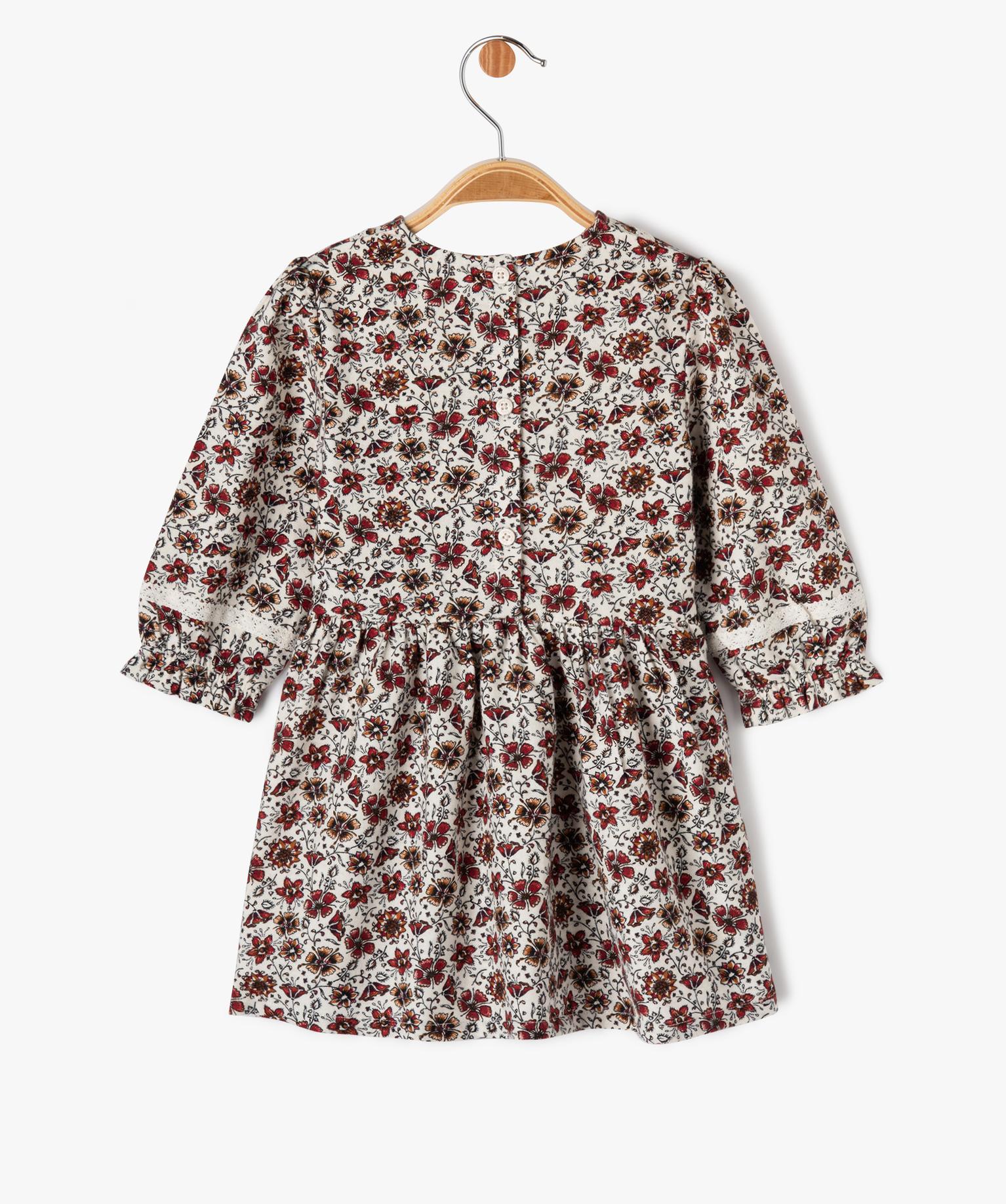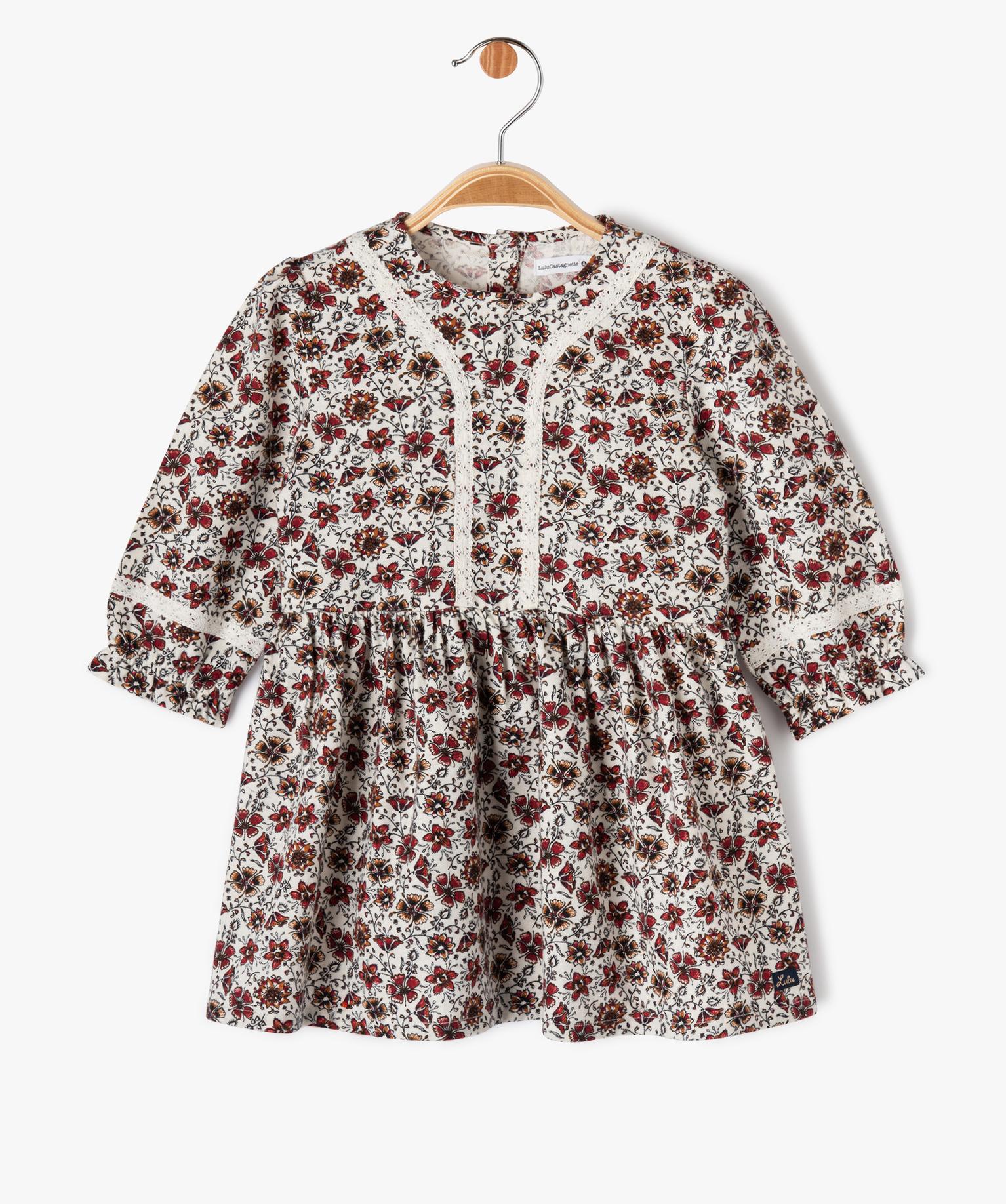 Robe à manches longues à motifs fleuris bébé fille - LuluCastagnette ecru