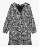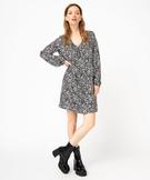 Assurez-vous une allure élégante en toute simplicité grâce à cette robe à manches longues. Une robe femme confectionnée dans une matière fluide confectionnée à partir de polyester recyclé et décorée de jolis motifs fleuris. Une robe courte dotée d’un large col V qui se prolonge par 3 boutons et de manches froncées sur les épaules avec poignets resserrés par un biais. Pour offrir toujours plus de confort cette robe droite est doublée sur la partie buste. Elle se porte avec des escarpins ou des boots au gré de vos envie et peut s’accessoiriser d’une ceinture.