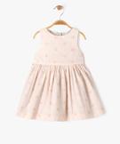Sublime robe bébé fille idéale pour une tenue de cérémonie comme pour illuminer le quotidien. Son atout ? Cette robe sans manches est réversible : un côté parsemée de fleurs rehaussées de paillettes dorées, de l'autre le même motif brillant répété sur fond uni. Cette robe d'été possède des boutons dans le dos pour un enfilage facile. Taille froncée. Jupe avec belle ampleur. Sans manches.