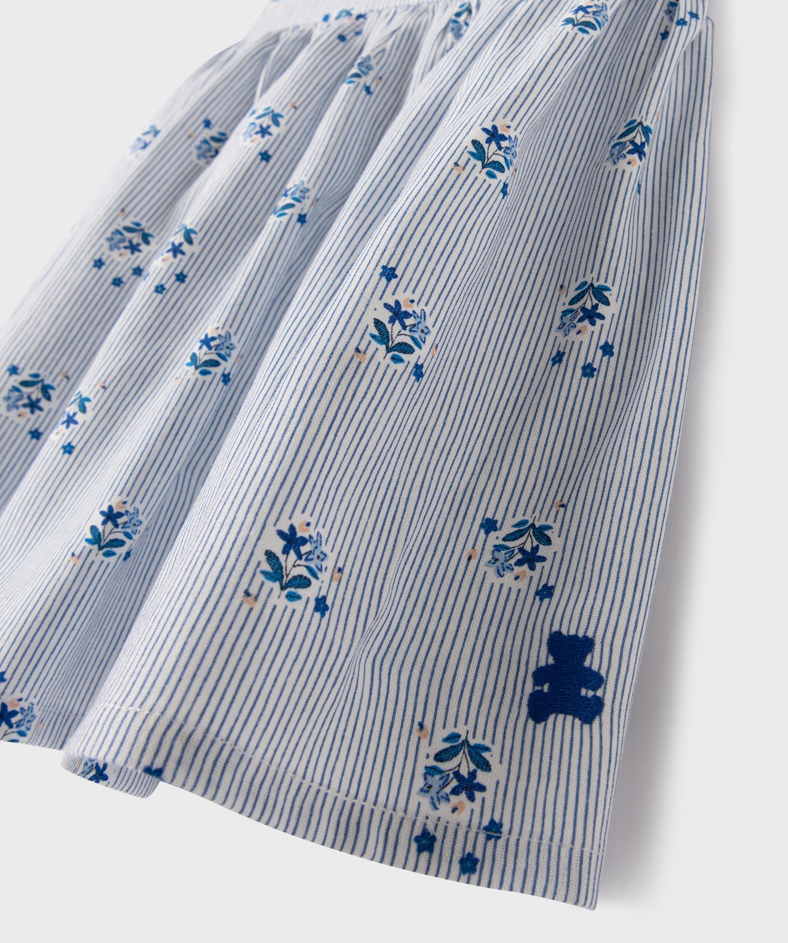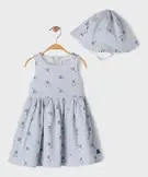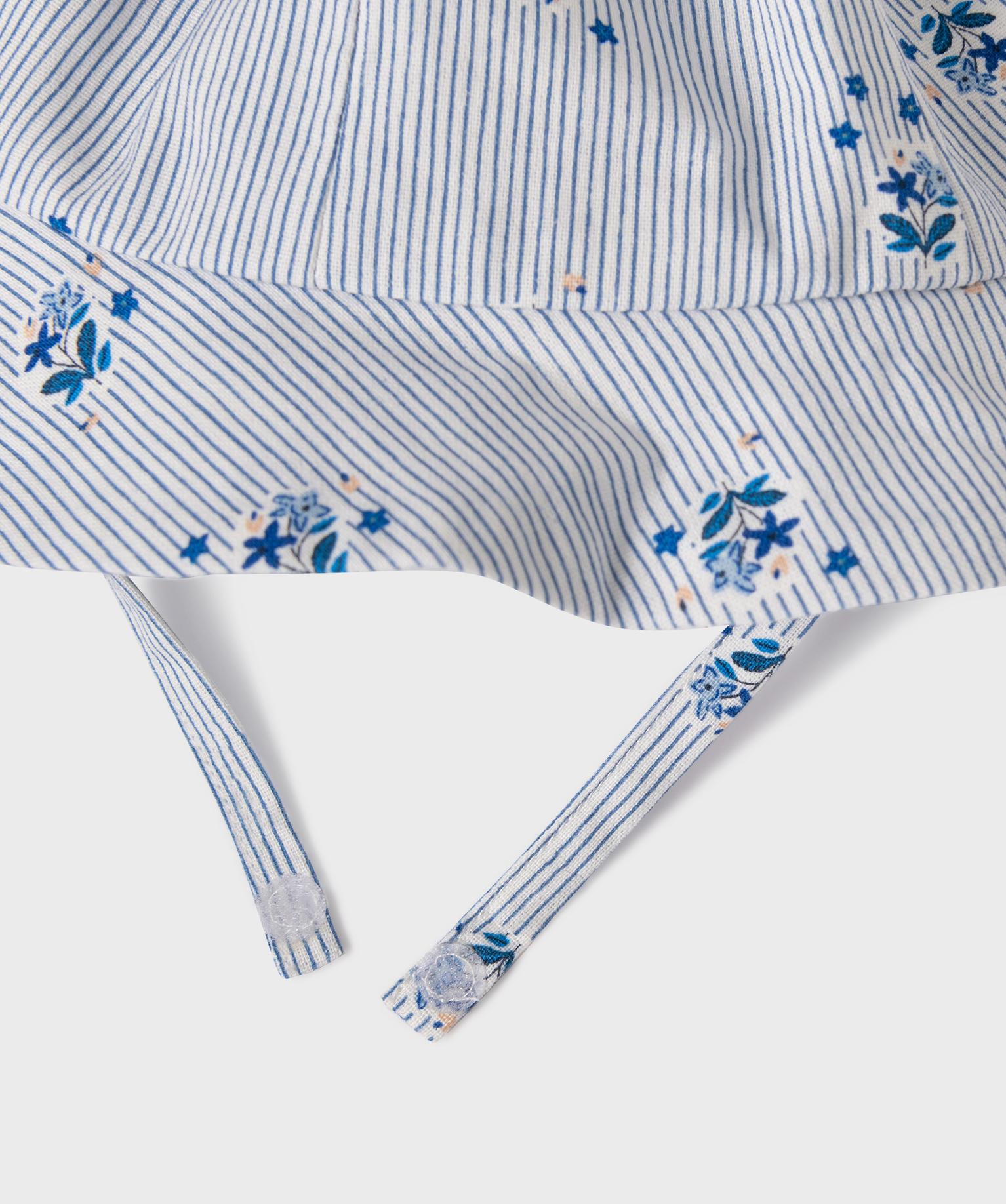 Robe à rayures et motifs fleuris avec chapeau assorti bébé fille - LuluCastagnette bleu