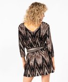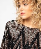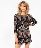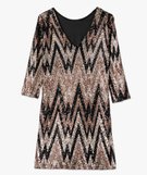 Cette jolie robe de soirée vous donnera l’occasion de briller lors des fêtes de fin d’année ! Une robe femme aux influences rétro, entièrement recouverte de sequins tricolores formant des motifs graphiques. Elle arbore un joli col rond bien dégagé, un décolleté en V dans le dos qui sublime la silhouette et des manches 3/4. Entièrement doublée, elle offre beaucoup de confort. Une robe à sequins à porter avec des escarpins à talon et une pochette de soirée assortie.