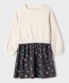 Pratique et pleine de charme cette robe fille affiche un bel effet 2 en 1. Elle se compose d’un haut sweat, ample et confortable et d’une jupe imprimée en viscose fluide. Sur le haut, un motif coeur ajoute une irrésistible touche girly. Conçue pour faciliter l’habillage des enfants, cette robe bi-matières possède un col large et élastiqué qui facilite le passage de la tête sans tirer les oreilles ! A la fois élégante et décontractée, elle se porte aussi bien avec des ballerines qu’avec des baskets ou des boots.