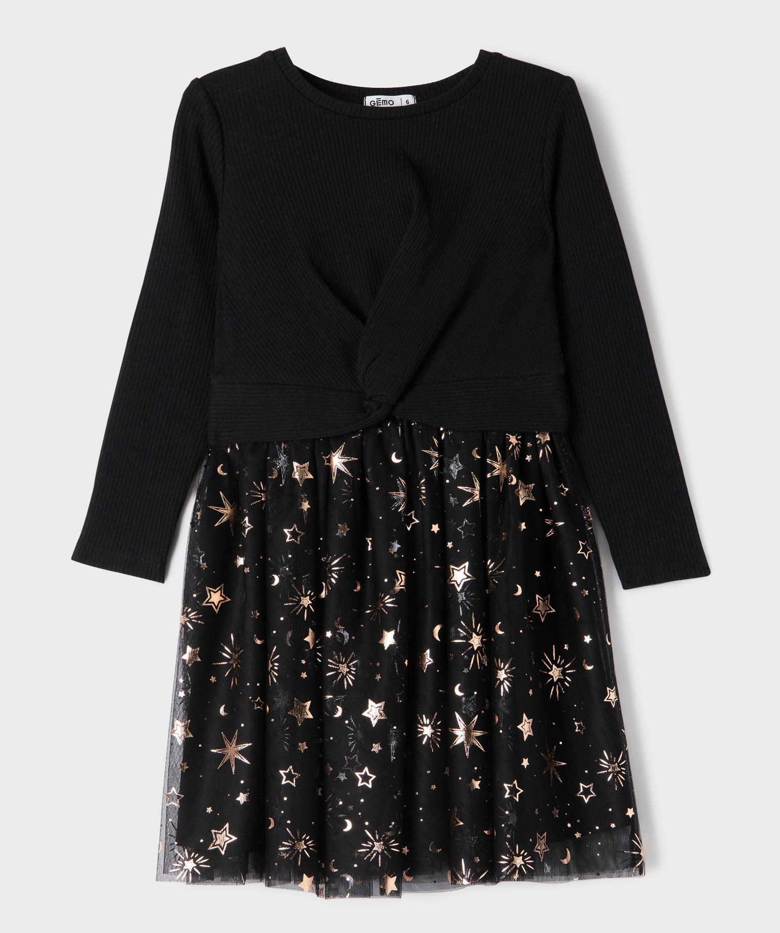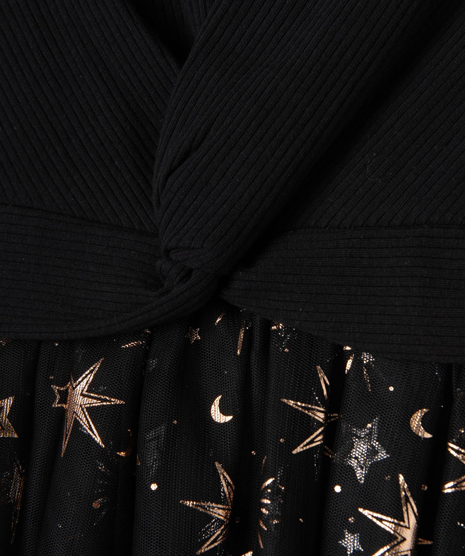Robe avec jupe en tulle à motifs étoiles fille noir