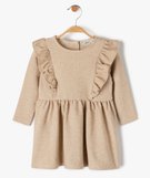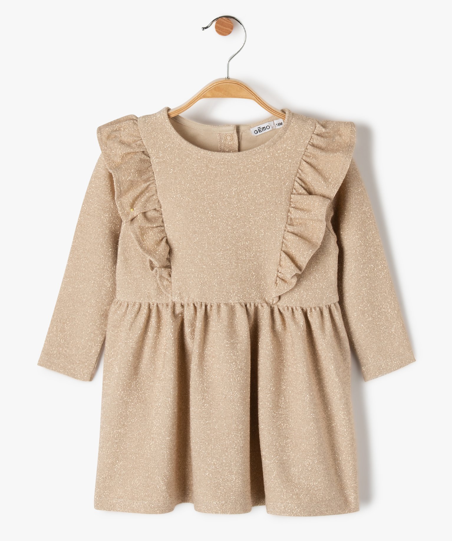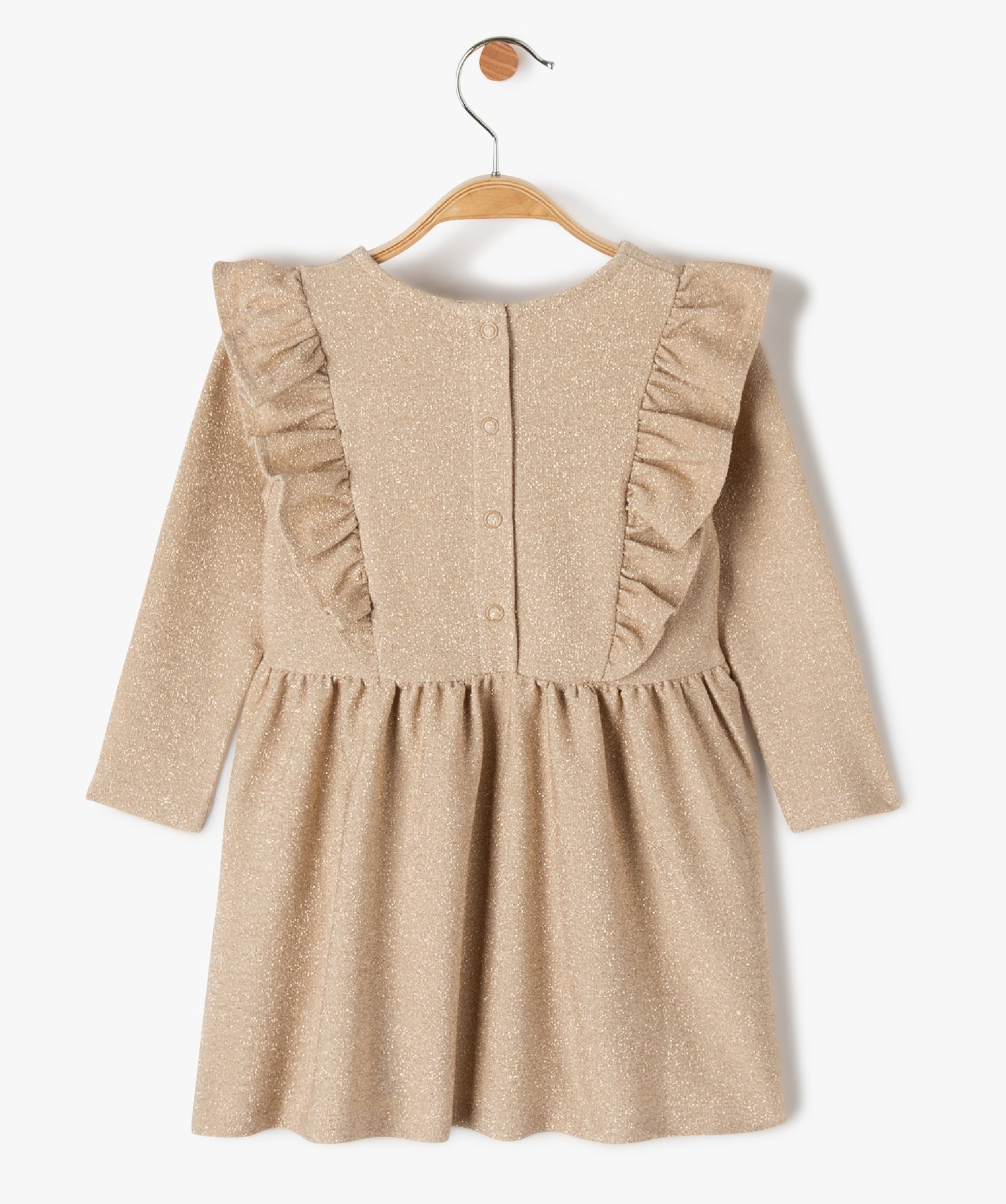 Robe bébé fille à paillettes avec volant sur le buste à manches longues dore