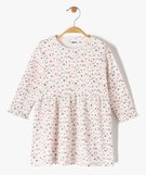 Robe bébé fille en maille côtelée et mouchetée ecru