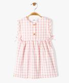 Robe bébé fille rayée en voile de coton texturé rose