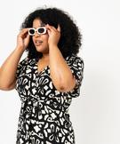 Laissez-vous séduire par cette élégante et très confortable robe imprimée. Une robe à manches courtes confectionnée dans une matière fluide, subtilement froissée, très agréable à porter. Elle affiche un buste cache-cœur avec col V. Cette jolie robe pour femme grande taille (du 46/48 au 54/56) est également dotée d'une ceinture amovible sous passants. Cette ceinture à nouer souligne la taille avec beaucoup de charme et assure à cette robe un tomber impeccable.