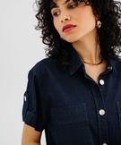 Alliez style intemporel et confort avec cette robe chemise en jean LuluCastagnette, une pièce phare du dressing féminin. Confectionnée dans une toile denim souple et légère, cette robe femme arbore une coupe ample décontractée et des manches courtes agrémentées d’une patte fixée à un bouton métallique. Deux larges poches plaquées sur la poitrine ajoutent une touche de style. Son col chemise classique et sa patte de boutonnage sur toute la longueur en font une pièce facile à porter. Une robe courte à porter seule avec des baskets pour un look urbain, ou ceinturée avec des sandales pour une allure plus féminine. Pinces poitrine. Bas arrondis. Logo ourson brodé sur poche poitrine. Logo métallique dans le haut du dos.