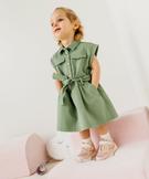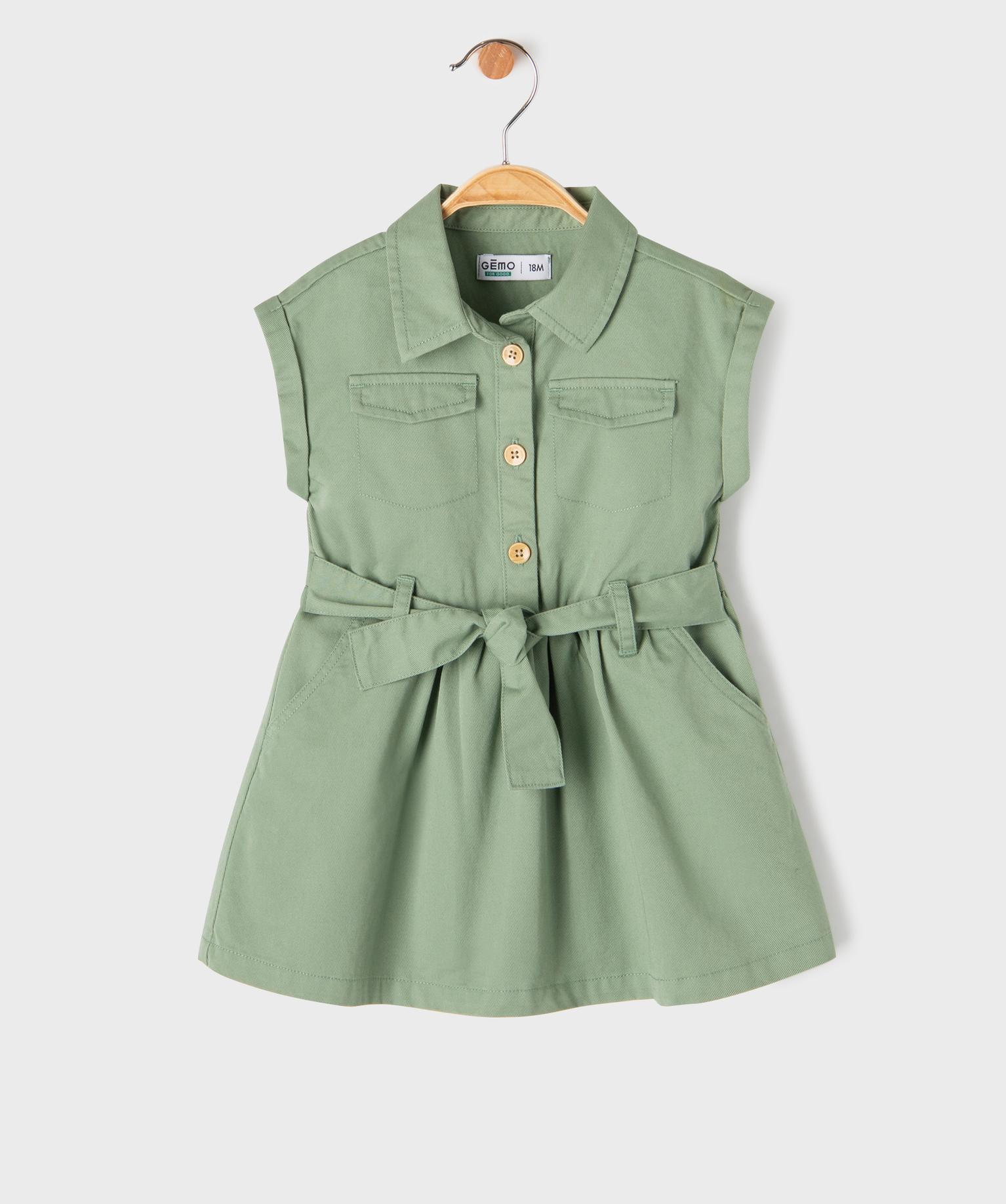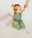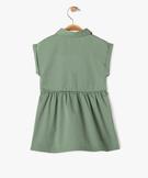 Robe chemise à manches courtes en toile de coton bébé fille vert