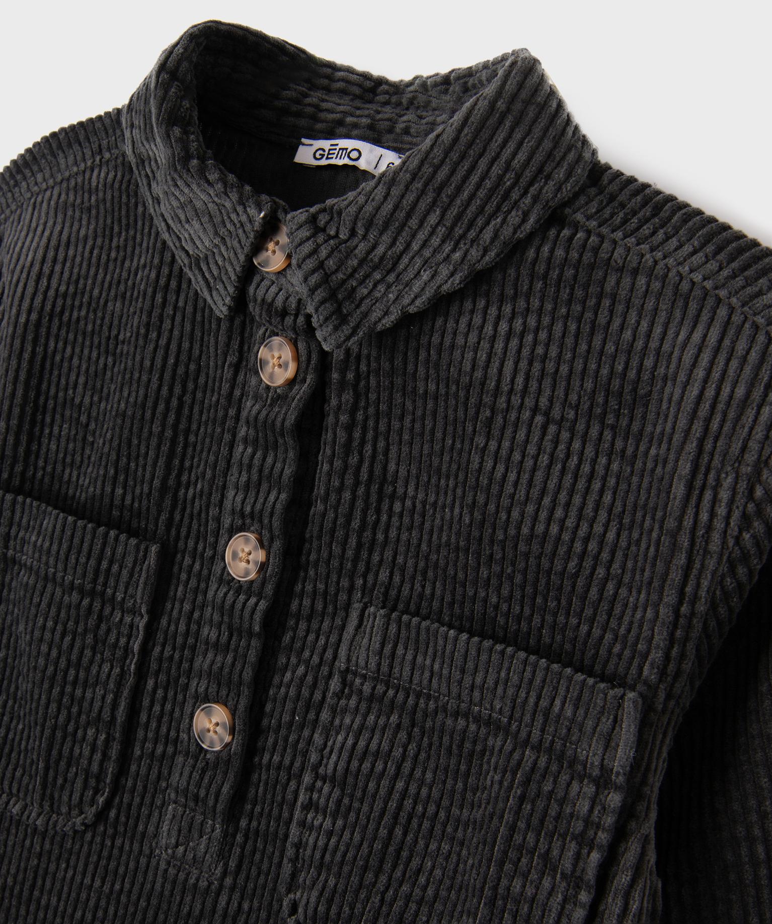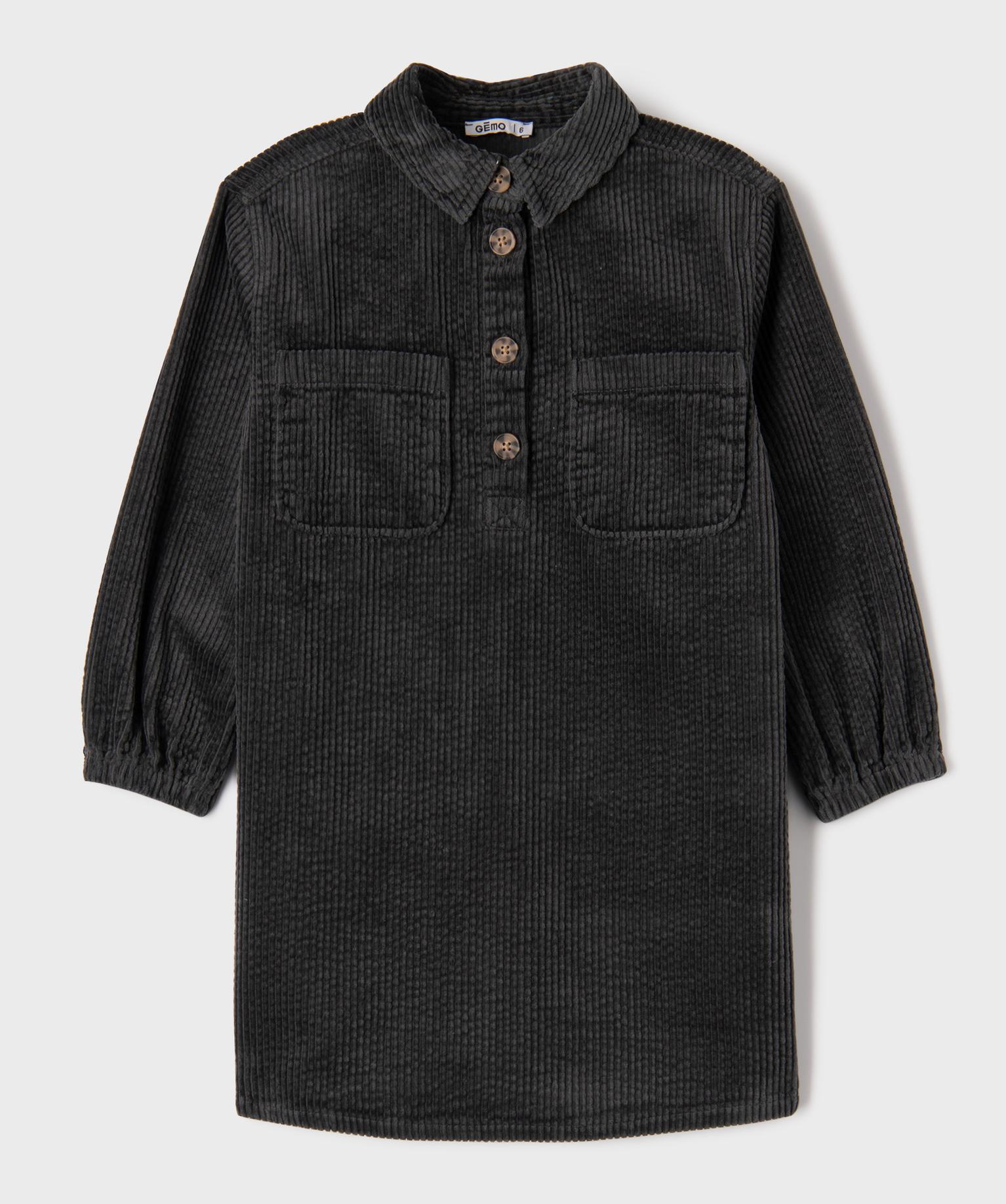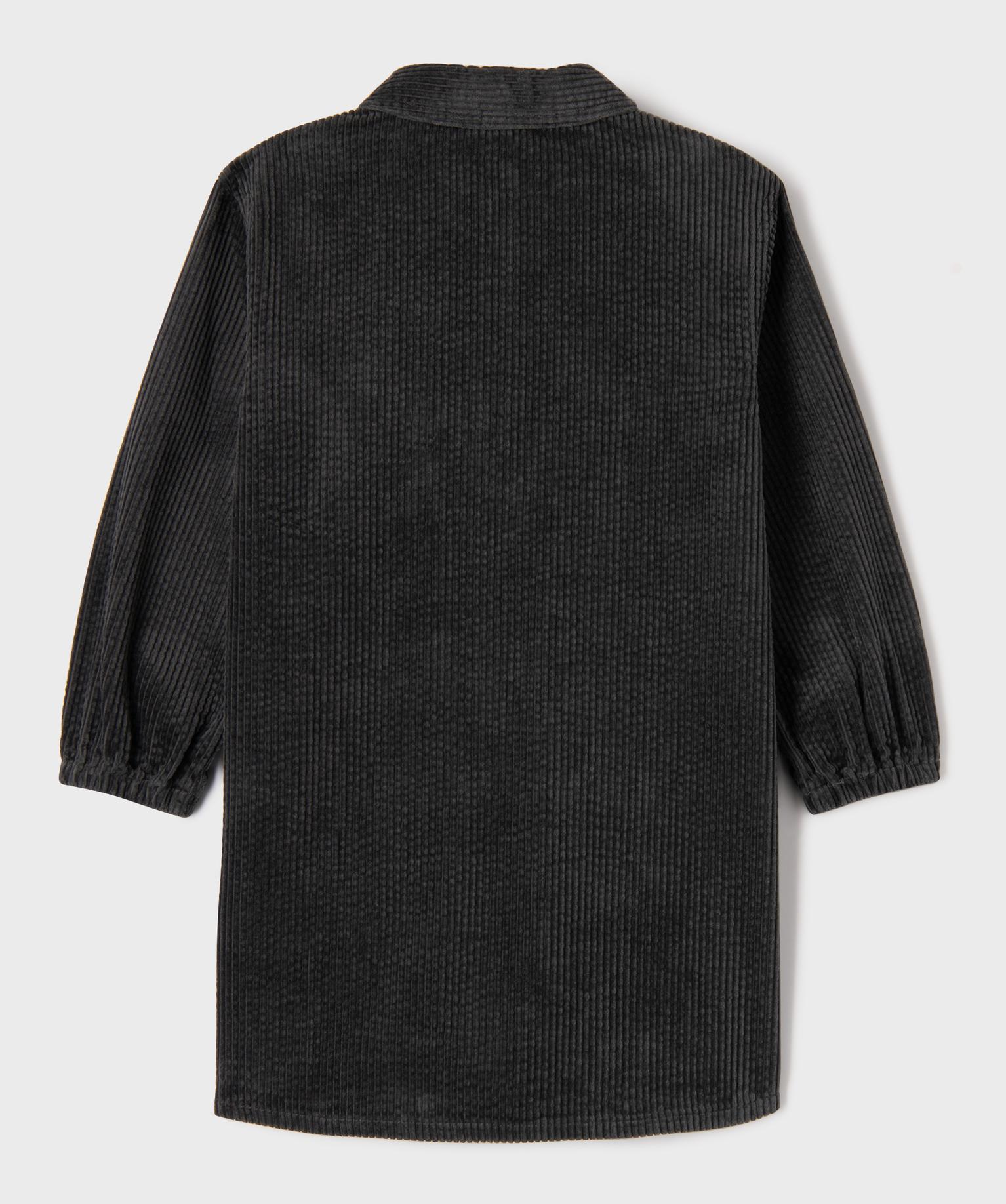 Robe chemise courte à manches longues en velours côtelée fille gris