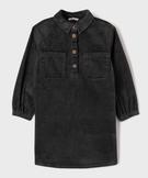 On ne se lasse pas de la robe chemise, cette superbe robe courte avec son col et sa boutonnière ! Ici, le modèle est confectionné dans un superbe velours à grosses cotes à mettre en valeur avec des bottes ou des boots crantées ! La robe fille possède 2 poches plaquées à la poitrine, des manches longues avec poignets élastiqués et une base arrondie. Fermeture du col par 4 boutons en écaille imitation.