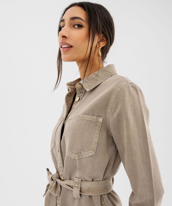 Robe chemise en jean à manches longues femme - LuluCastagnette kaki