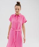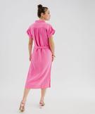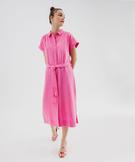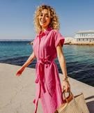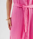 Robe chemise longue à manches courtes en gaze de coton femme rose