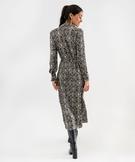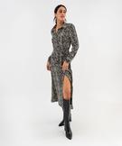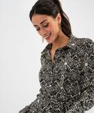Robe chemise longue à manches longues en satin imprimé femme noir