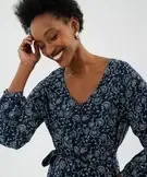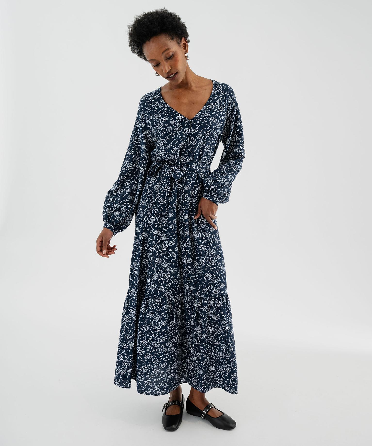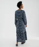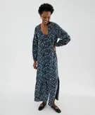 Robe chemise longue à manches longues en viscose fleurie femme bleu marine