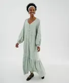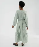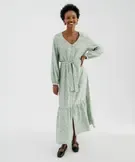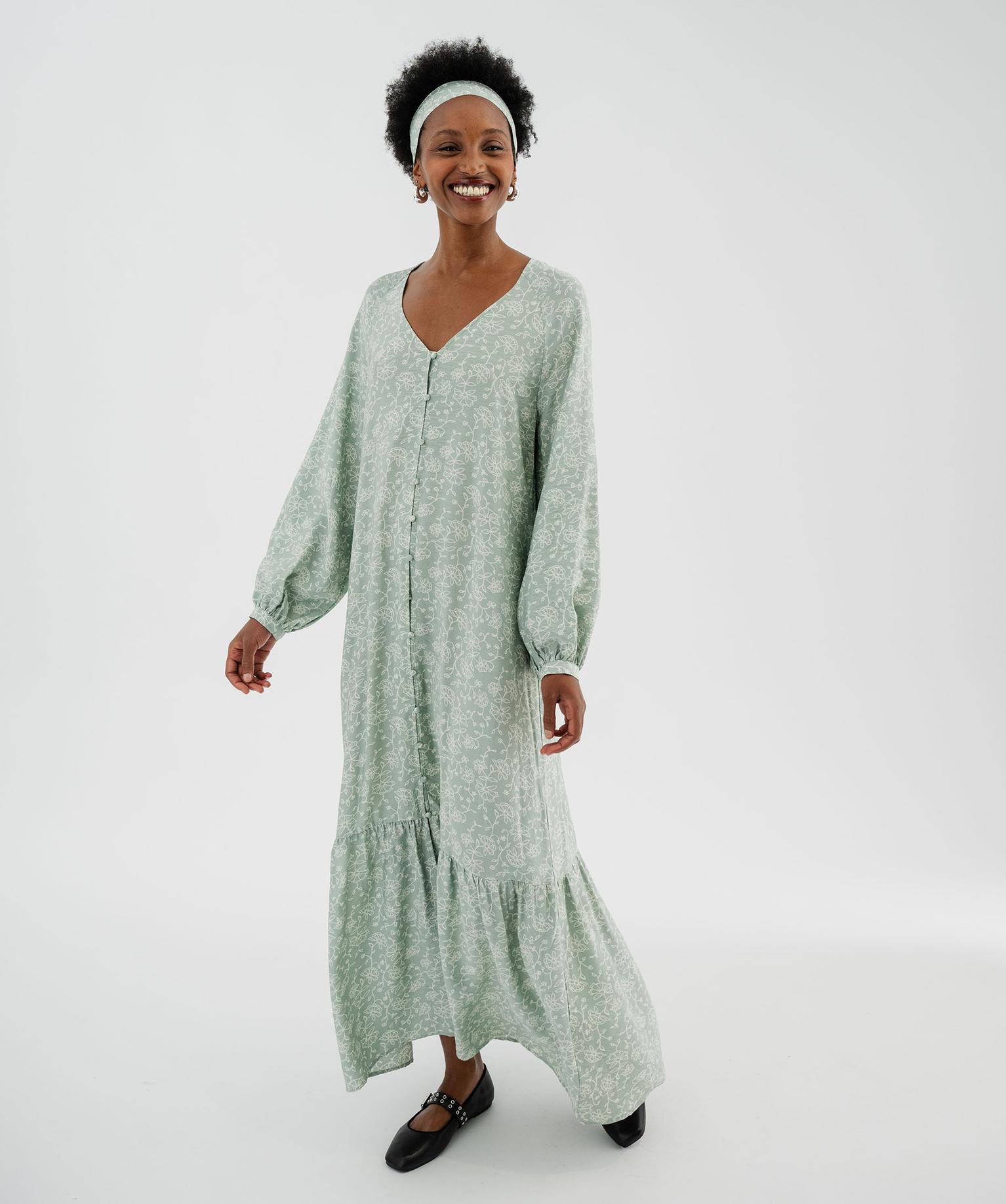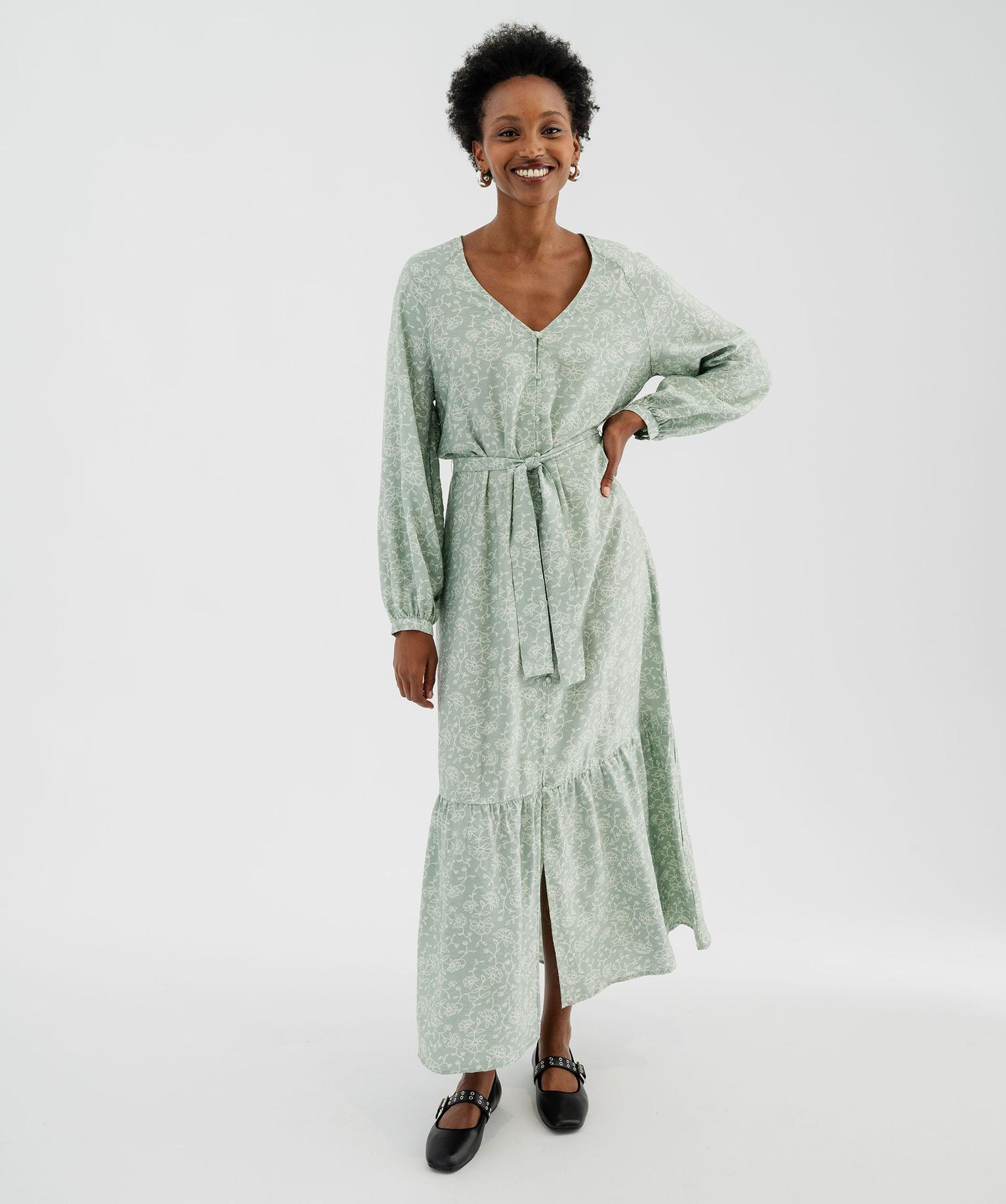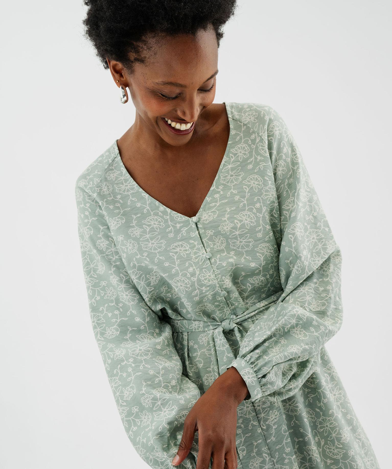 Robe chemise longue à manches longues en viscose fleurie femme vert clair