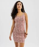 Robe courte à bretelles en jersey stretch imprimé femme rouge fonce