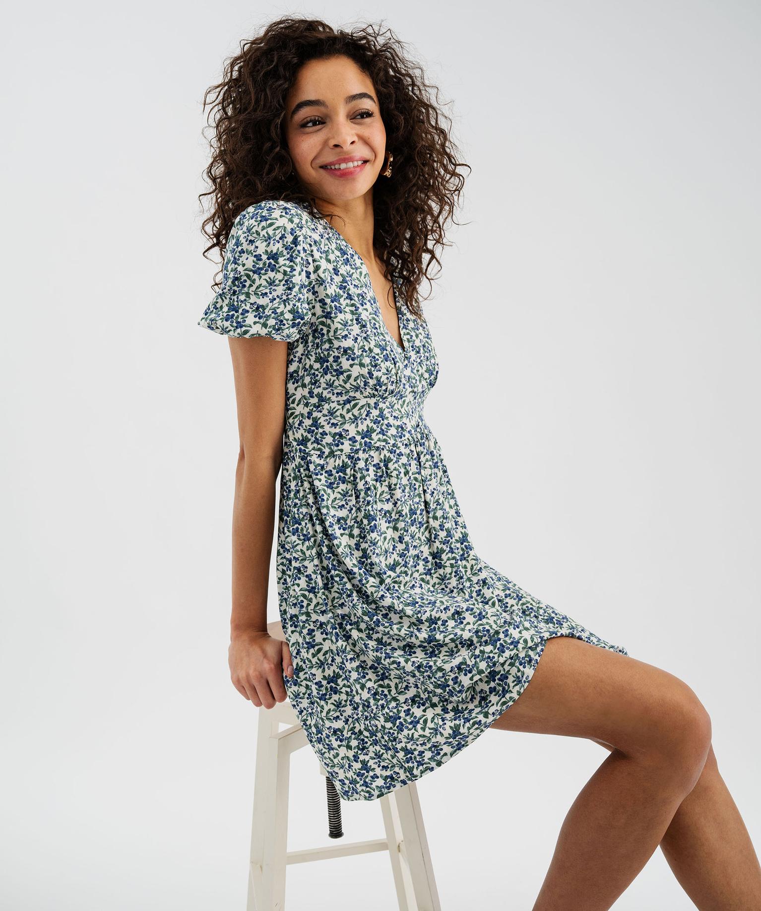 Cette robe courte femme joue sur un équilibre parfait entre charme et décontraction. Les manches ballons courtes ajoutent du volume et une touche féminine tout en apportant de l'aisance aux bras. Le décolleté en V, rehaussé par des découpes et des fronces sous la poitrine, s’accompagne de petits boutons décoratifs pour un détail raffiné. La taille élastiquée au dos se marque grâce aux deux liens de chaque côté, à nouer à l'arrière. Le bas de la robe, ample et froncé à la taille, accompagne chaque mouvement avec fluidité. La robe imprimée est fabriquée dans une viscose au toucher peau de pêche, légère et douce. Cette robe courte femme se porte facilement avec des sandales plateformes ou des baskets en toile pour un look estival élégant mais simple à vivre.