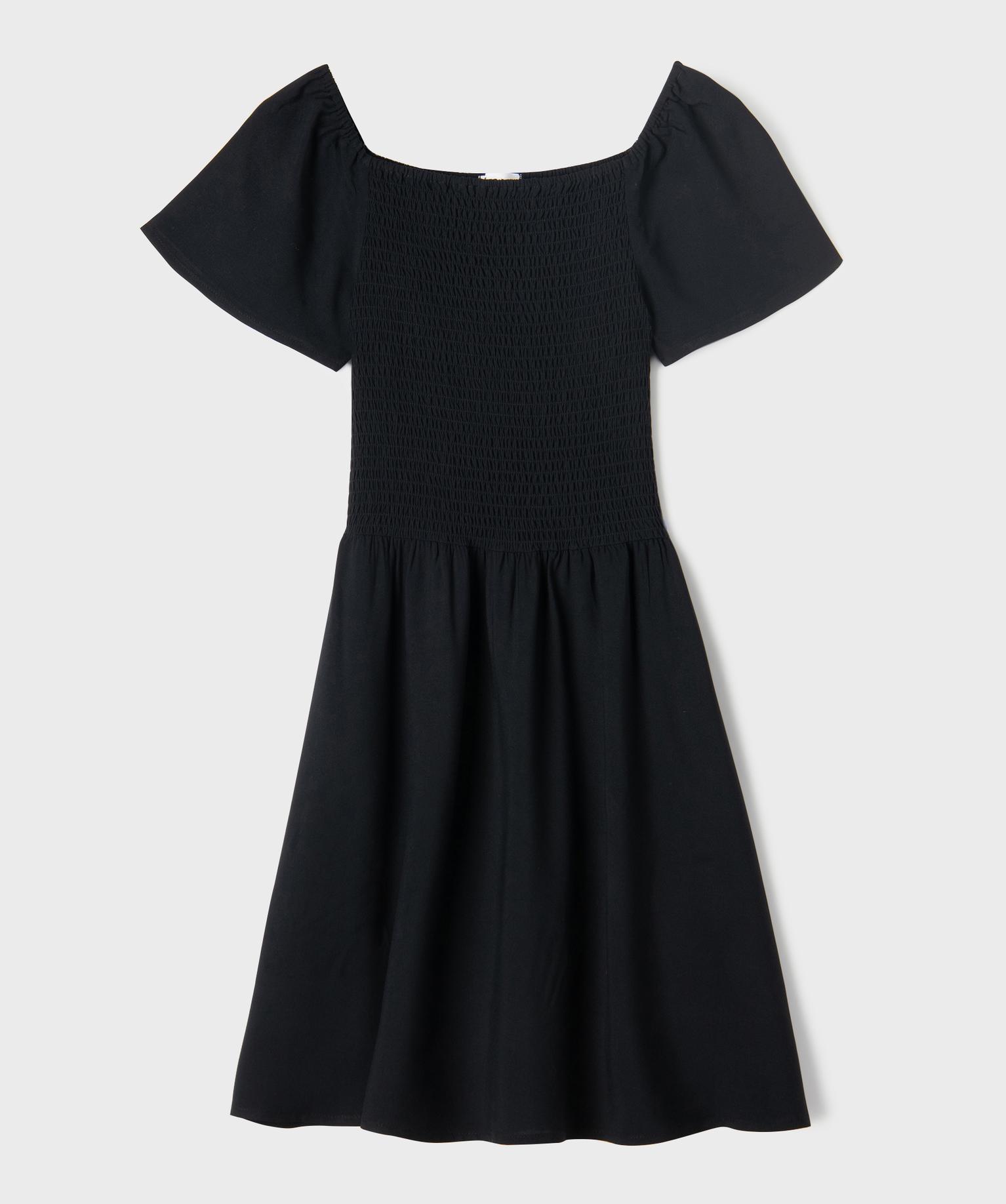 Cette robe fille unie séduit par son style sobre et élégant. Confectionnée dans une viscose fine, fluide et agréable à porter, elle met en valeur la silhouette tout en offrant un confort parfait pour la belle saison. Son encolure modulable grâce aux épaules élastiquées permet de porter la robe avec un décolleté carré ou légèrement tombante sur les épaules pour un décolleté Bardot délicat. Le haut smocké souligne joliment le buste. La jupe évasée apporte une touche aérienne et féminine. Facile à accessoiriser, cette robe noire se porte aussi bien avec des sandales pour une allure chic qu’avec des baskets pour un look décontracté et moderne.