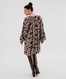 Une robe courte à manches longues qui respire le charme bohème ! Confectionnée dans un crêpe fleuri fluide, doublé d’une maille satinée extensible (sauf aux manches), cette robe femme met en valeur une coupe trapèze flatteuse pour toutes les silhouettes. L’encolure est ajustable grâce à un ruban coulissant terminé par de petites perles dorées, avec une fente discrète qui souligne le décolleté. Les manches raglan sont rehaussées d’un volant délicat, et les poignets élastiqués apportent un joli effet blousant. Une robe féminine et pleine de caractère, idéale avec des bottines crantées et une grosse maille ou des babies à talon et un blazer selon vos envies de style !