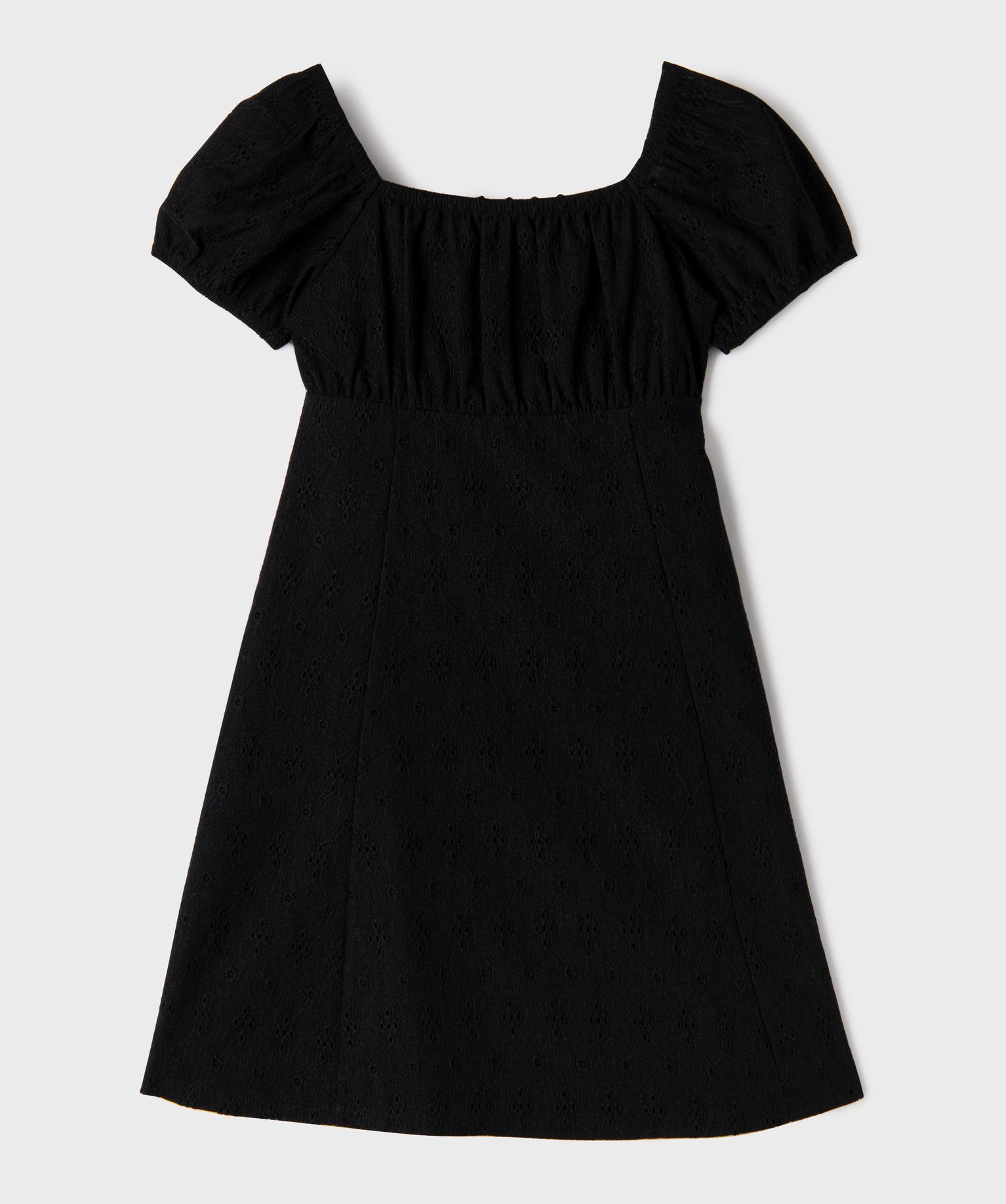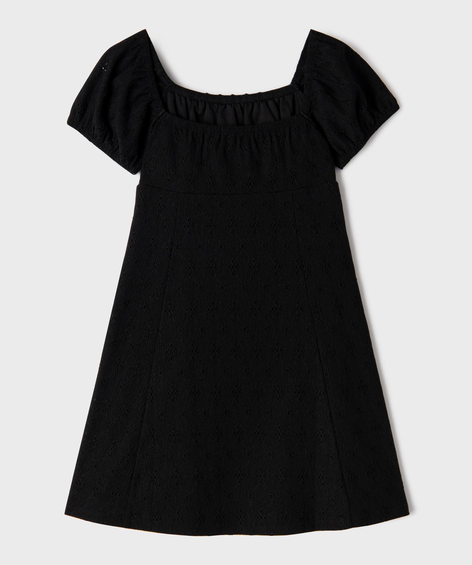 Cette robe courte pour fille à taille empire offre une allure à la fois élégante et confortable. Elle présente une encolure carrée à l’avant comme à l’arrière, accompagnée de manches courtes bouffantes pour une touche très féminine. Les épaules et le décolleté sont élastiqués, assurant un bon maintien tout en permettant de jouer sur le porté : version encolure carrée ou col bardot. La partie basse, sous la taille empire, est évasée en trapèze et offre un tombé raffiné. La robe est confectionnée dans une matière extensible, texturée et ajourée façon broderie anglaise. Elle est entièrement doublée.