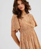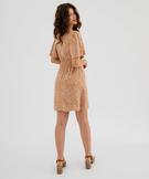 Cette jolie petite robe courte vous promet un maximum de confort et d’élégance. Confectionnée en viscose fluide, cette robe pour femme est particulièrement confortable en saison estivale. Elle possède un décolleté cache-coeur, de larges manches courtes froncées sur les épaules et une ceinture élastique. Une robe imprimée facile à porter en toutes circonstances qui s’accordera avec une paire de baskets pour un look décontracté ou avec des sandales à talon pour une allure plus chic.